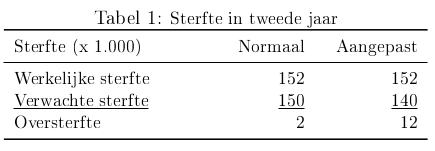 Merk op dat we deze oversterfte Aj gebruiken als input in tabel 3.